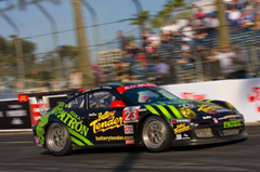 Whether running for 12-hours at Sebring or 100-minutes at Long Beach Juan Gonzalez and Butch Leitzinger were able to back-up their Florida win with one in California. The winning moment of the race, unfortunately, was the losing moment for their teammates Kapudija and Sweedler. Sweedler put the No. 23 Battery Tender/Tequila Patron/Alex Job Racing/Porsche 911 GT3 Cup in the lead in GTC on lap 21. He then proceeded to lead the GTC race right up to pit stops on lap 37. The AJR crew was able to get Kapudija out still with the lead, which he held up until four-minutes to go in the race. The Chicago resident got into some debris on the track into Turn Five and spun. This allowed Leitzinger to pass for the lead and the win.