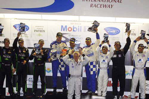 Car Amigo and Alex Job Racing Go One - Two - Three at Sebring in GTC Sebring, Fla., Alex Job Racing (AJR) swept the GTC podium tonight in the 58th running of American Le Mans Series (ALMS) Presented by Tequila Patron Mobil 1 Twelve Hours of Sebring race. The AJR entered No. 81 Mission Foods Porsche took the win with the team car No. 23 Battery Tender/Tequila Patron coming second and the No. 80 Car Amigo 911 finishing third. Leh Keen shot off to an early lead behind the wheel of the No. 81 Mission Foods/Alex Job Racing/Porsche GT3 911 Cup. The new to ALMS competition driver set the pace for the field early on by running laps a second faster than the rest of the field. The speed and motivation carried over to teammates Juan Gonzalez and Butch Leitzinger. Aside from a stop-and-go-penalty for a pit stop violation, the team's time at the front was never lost. For Keen it is his first win at Sebring and in ALMS competition as well as having the honor of posting the fastest lap of the race in GTC. For Leitzinger it his second win, the first was 20 years ago. For Gonzalez it adds to his family's legacy at Sebring where his brother (Roberto) finished third in 1976. "It wasn't easy," Keen said. "The race was pretty intense. I have to give it to Alex - one-two-three on the podium is a great achievement as well as the same result from qualifying. His team puts together some great cars. We don't have a dent or a scratch on our car. We kept it clean. The only hiccup we had was the pit lane violation. We were able to finish with a couple of laps lead. I am happy to be a part of the team and of course have the top step on the GTC podium." "This is a dream come true for me," Gonzalez said. "I have been racing at this track for 20 years in vintage. I always wanted to run the 12-hour race. In 1976 I was here when my brother finished third. This is an accomplishment for me and one of my dreams. Alex, Butch and Leh made the dream come true. I did my part behind the wheel being steady and staying out of trouble, a great day!" "Leh and Juan did a great job," Leitzinger said. "By the time I got in the car we had a great lead and that makes it easy. The car preparation was great, other teams were having problems. I just kind of pumped out laps. I hate to say it, but it was about as easy as a race at Sebring ever gets. Nothing was really asked of us. We didn't have to throw out huge laps to catch someone or make-up ground. Leh gave us a big advantage at the beginning and we never seeded it after that point." The No. 23 Battery Tender/Tequila Patron/Alex Job Racing/Porsche 911 GT3 Cup driven by Romeo Kapudija, Bill Sweedler and Jan-Dirk Lueders finished the day in second. The team had to battle back from some overzealous driving that resulted in a couple of spins on the track. "My last stint was the dusk run into the dark," Sweedler said. "The only issue we had was that we couldn't use the brights with the lights. We were able to bring it home in second. Alex and the team did a great job all week. We had a mishap on the track on Wednesday and the guys had do some body repair, but they got us back out on Thursday as good if not better than it was on Wednesday. Romeo and Jan-Dirk were very solid behind the wheel all day." "It was a great day for Alex Job Racing, Battery Tender and Tequila Patron," Kapudija said. "The team worked really hard to get the car flawless for the race. My last stint I just drove it around like it was Sunday. I was a little nervous, I made sure that traffic wasn't an issue and we weren't in the way. I am happy for the second place finish. My teammates did a great job. Everyone came in fresh and my off season conditioning really paid-off." "It was awesome," Lueders said. "My last stint was in the dark. I like driving at night and in traffic. We had a little high-speed under-steer in the car, but other than that it was a lot of fun. The guys in the other classes were very fair and they were clean with their overtaking. The team supported us from A to Z. We had a few small mistakes, I had a drive-thru penalty because of a pit lane speed violation. In general it was a real smooth race for us. Thanks to the great preparation by the team we had a great day." Luis Diaz, Ricardo Gonzalez and Patrick Kelly finished third in their No. 80 IDN/Car Amigo/Porsche 911 GT3 Cup car. After starting in third position the trio ran into some early issues with flat spotted tires and a malfunction with the driver cool suit, causing them to pit out of sequence. Once they settled into a rhythm they were able to drive back through the field and take the third step on the podium completing the AJR sweep. "I am very happy, what a great way to start out the year," Diaz said. "At the beginning of the race we had a lot of issues and it really didn't look even possible to make it to the podium. But everybody in the team did a great job, the three of us managed to be very consistent and nobody put a wheel wrong. We just kept fighting and pushing and slowly we came back from last to third. We are very optimistic for the rest of the year. The Alex Job Racing/Car Amigo team started and finished 1-2-3 today which just shows the quality and potential of the team. I'm sure we'll be able to repeat many times this year. I am very proud to be able to represent IDN, Cooper Gay and Rainmaker Group and to have them with me on the podium." "What a great feeling," Gonzalez said. "I had always dreamed of competing in ALMS and to be on the podium on my first start is amazing. We have been working on this project for a long time and now thanks to IDN, Cooper Gay and Rainmaker Group here we are in Sebring, third in class and with the best team in the paddock. I really enjoyed the race, it was tough at first but during my second stint I managed to pick up a couple of positions and just got into a rhythm and kept closing the gap to our teammates in front. The team gave us a great car, even though Luis and I had very limited experience in our P